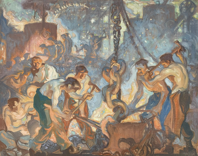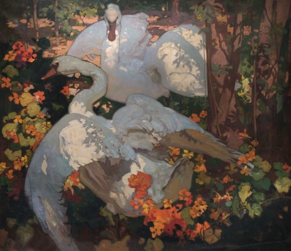 Brangwyn travelled widely, taking inspiration from the everyday scenes and working lives of the people he encountered. This display highlights paintings and etchings inspired both by the industrial landscape of London and his travels to Europe, Turkey and North Africa. It includes some of Brangwyn’s most popular paintings, including The Swans, back on display after several years in storage, and lesser-known examples that showcase his ability to produce atmospheric and beautiful images across a variety of different media.