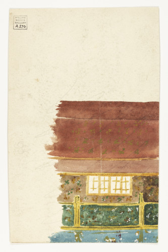 This abundant mirrored design by Arthur Heygate Mackmurdo is likely for a textile or wallpaper, and demonstrates the designer’s skill and affinity for capturing flowing natural forms. It includes scrolling green acanthus leaves, which were also a common motif found in many of William Morris’s designs.
