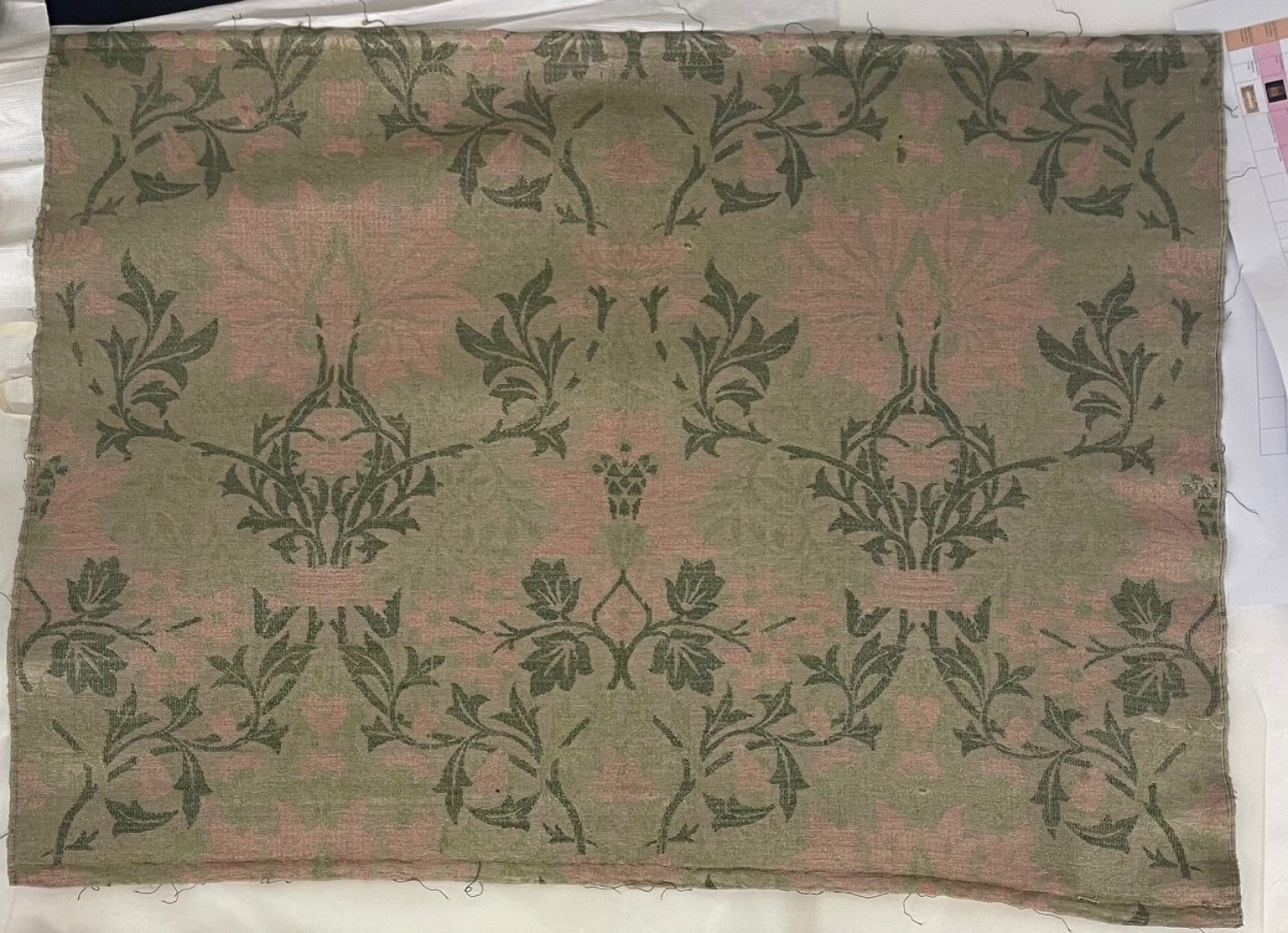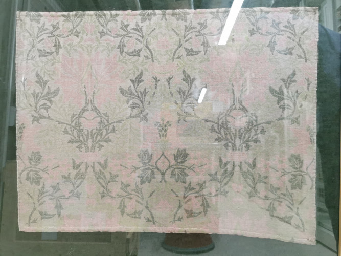 William Morris designed Flower Garden in 1879. He described it in a letter to Georgiana Burne-Jone on 4 March 1879: ‘I am…in a whirlwind of dyeing and weaving, and…rather excited by a new piece…which looks beautiful, like a flower garden’. Morris claims to have chosen the colours to ‘suggest the beauties of inlaid metal’. They were almost certainly influenced by a display of items from Damascus he had studied in Vincent J. Robinson’s shop in London in 1878.