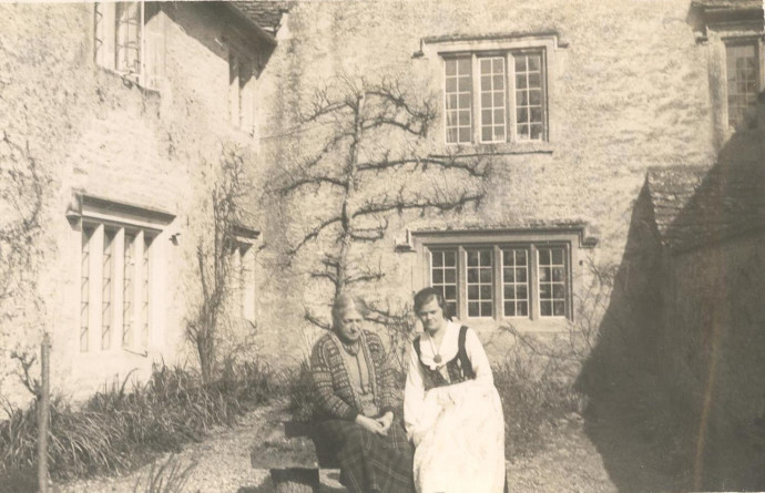 May Morris and Sigrún Stefánsdóttir in Icelandic dress at Kelmscott Manor (1933)