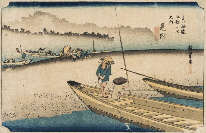 Mitsuke A large sand bank in the centre of the Heaven dragon River, and people crossing the further arm (ca.1834)