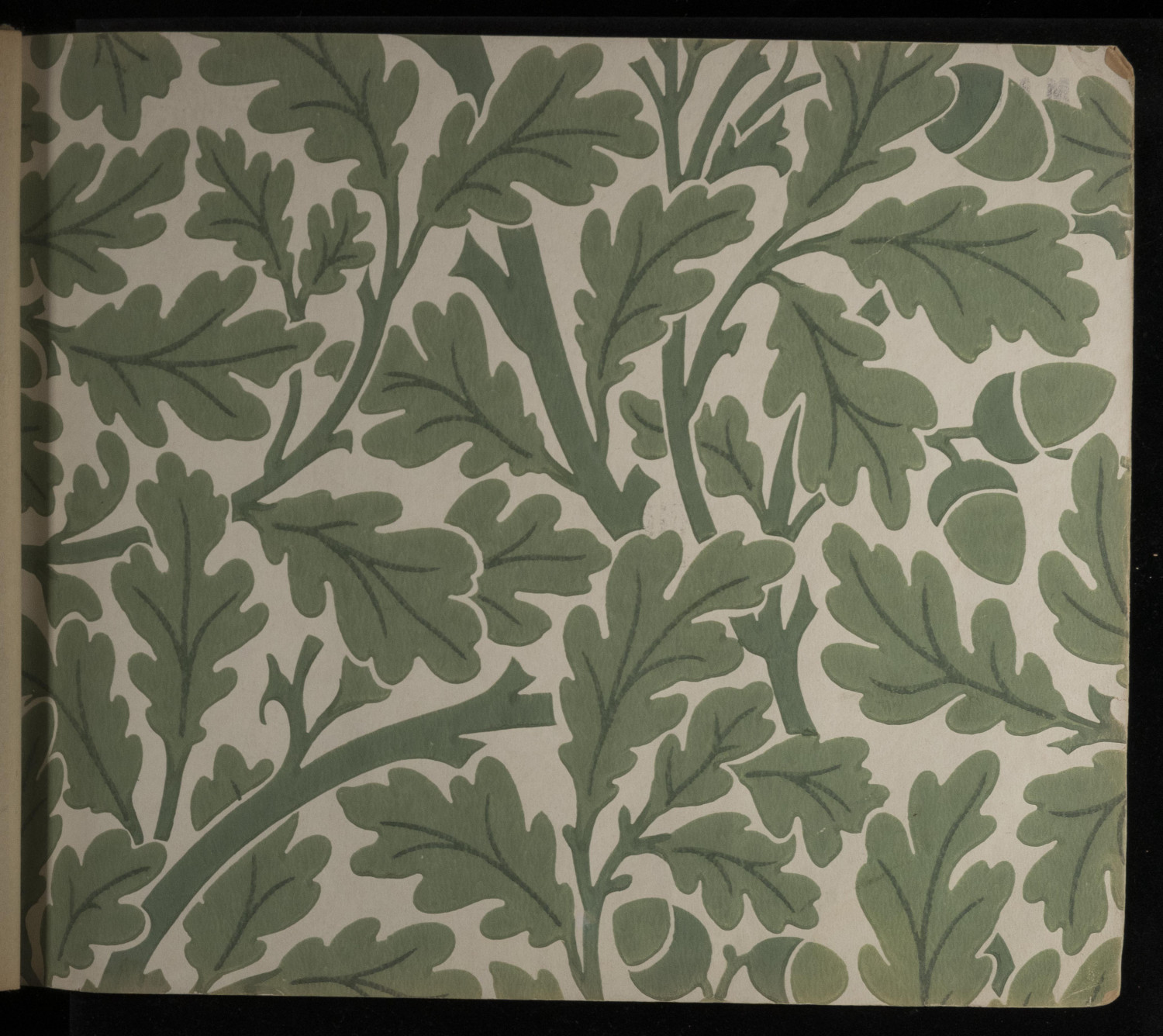 4. Oak Tree, no.330, J. H. Dearle, c. 1896. Two shades of green on white.