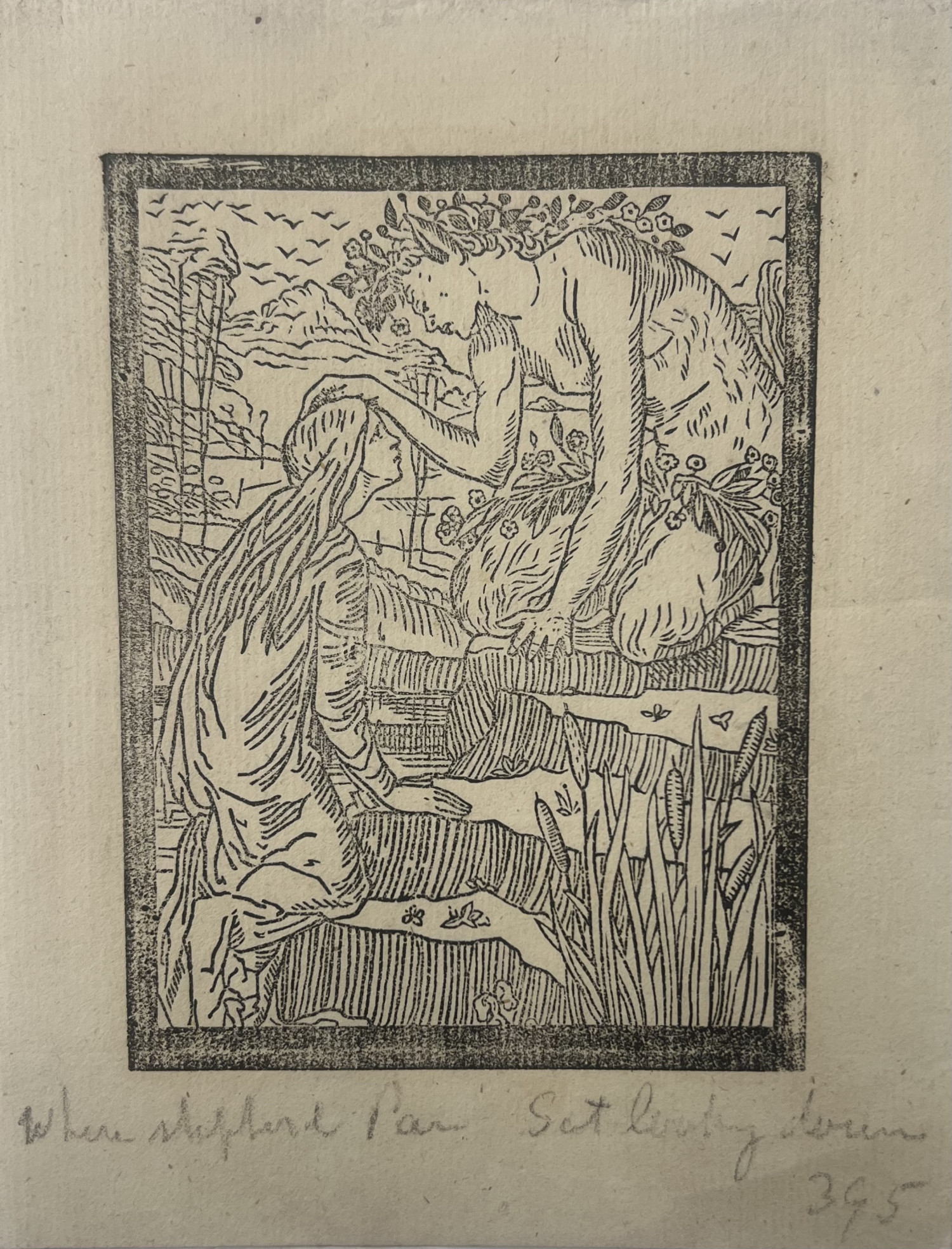 This is one of a series of illustrations to ‘The Story of Cupid and Psyche’ for the projected edition of ‘The Earthly Paradise’ begun in September 1865. The illustrations were engraved on wood by Morris and his friends and associates in the Firm. Burne-Jones did illustrations for some of the other tales in ‘The Earthly Paradise’, but the Cupid and Psyche wood engravings were the most completed part of the project which was abandoned in 1868 after trial pages, set in Basle and Caslon types at the Chiswick Press, did not prove satisfactory.