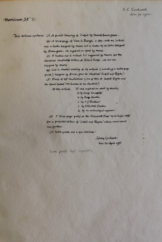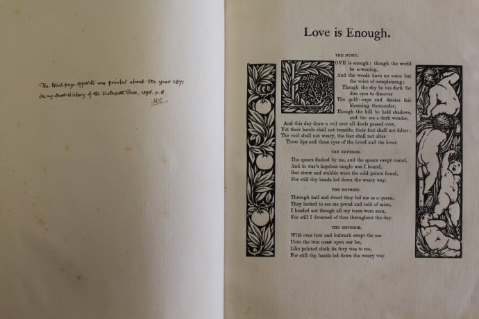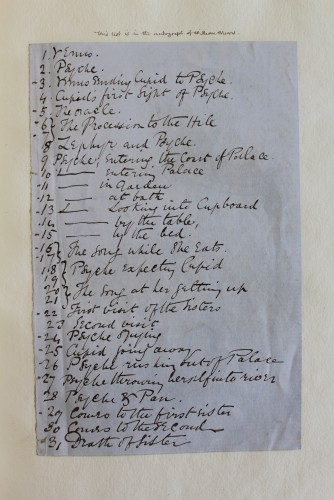 This volume includes a handwritten list of the illustrations in William Morris’s hand.