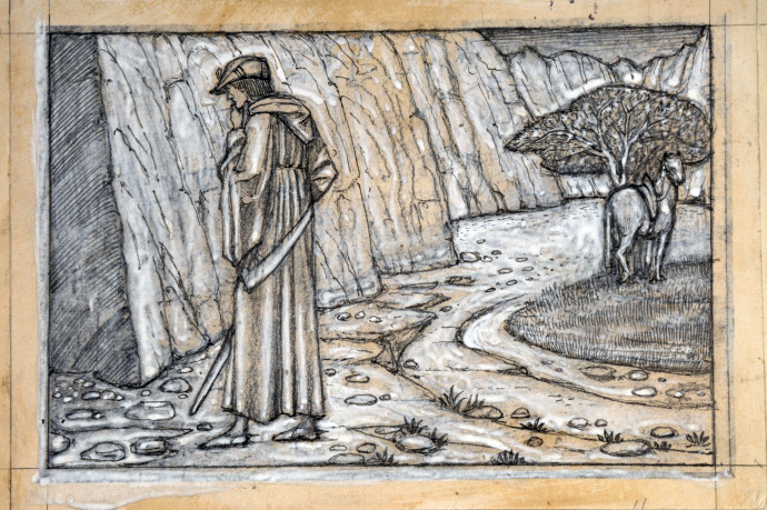 Walter Approaching the Cave Entrance: Drawing For an Illustration for a projected Edition of ‘The Hill of Venus’ (c.1896)